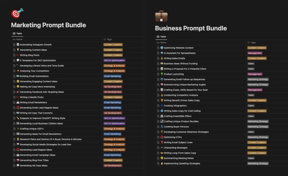 - 🎯 Marketing Prompt Bundle: Effortlessly generate campaign ideas, ad copy, and engaging social media content.