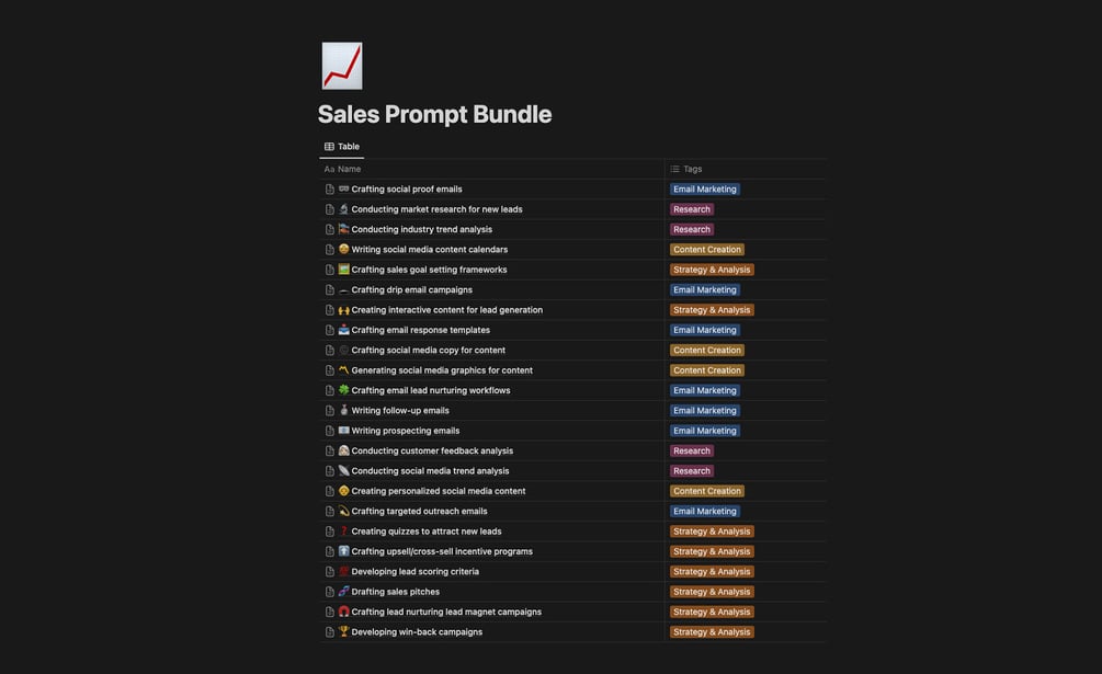- 📈 Sales Prompt Bundle: Generate high-quality leads, craft winning pitches, and overcome objections.